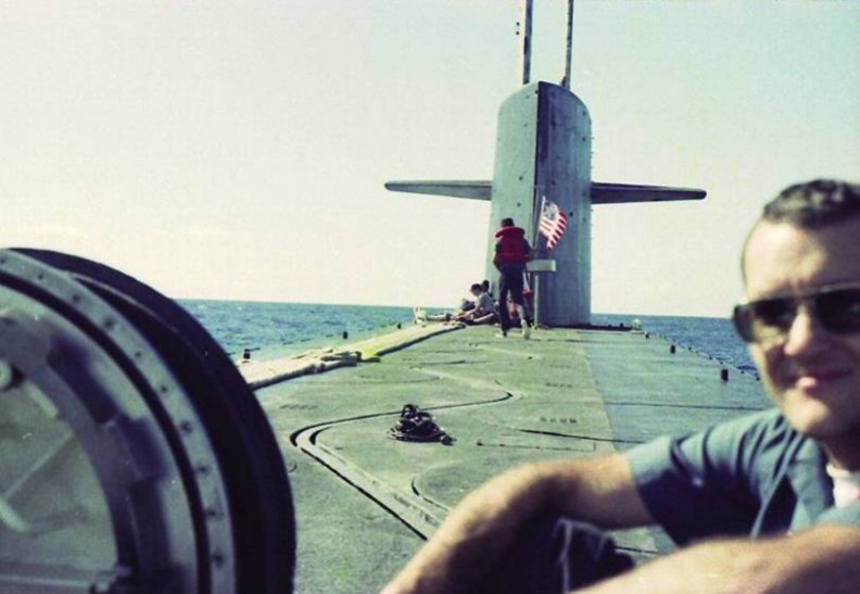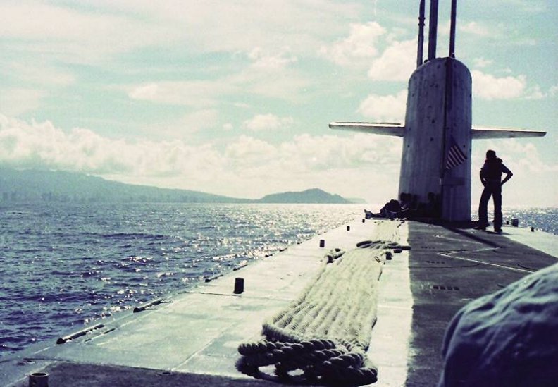 These shots were taken by EM3 Barnett (a.k.a. EMC Barnett retired) prior to pulling in at PH at the end of Patrol 54 (circa 1980). We were waiting for a slow target to get out of our way in the channel so we did slow circles in front of Waikiki to entertain the tourists. You are looking at the last shot of the SSBN we knew and (loved?). 2 weeks later, she was dubbed an SSN.